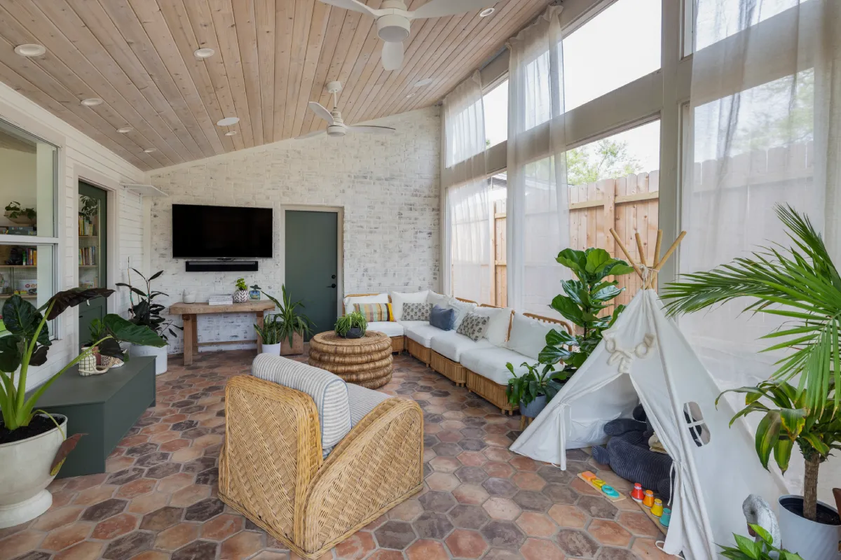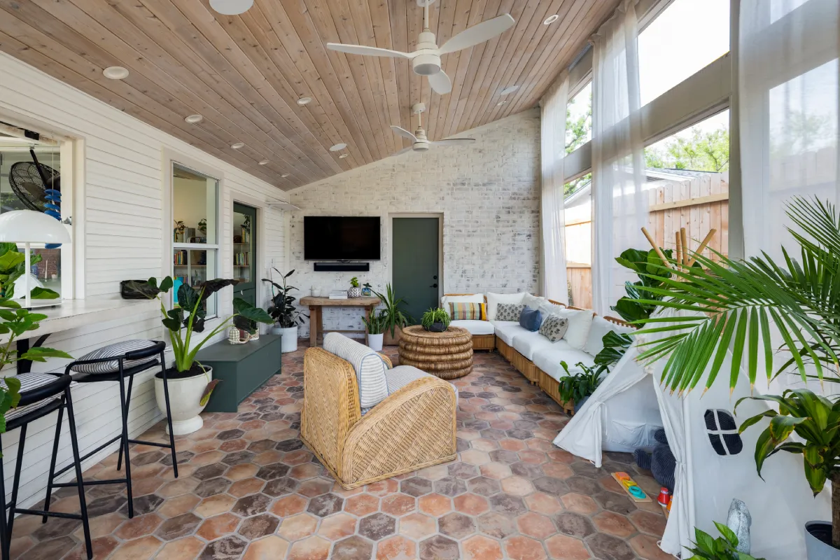 Our signature bohemian and biophilic style shines throughout, with natural materials, layered textures, and lush greenery creating a strong indoor-outdoor connection. Landscaping frames each gathering space, amplifying this sense of cohesion.
