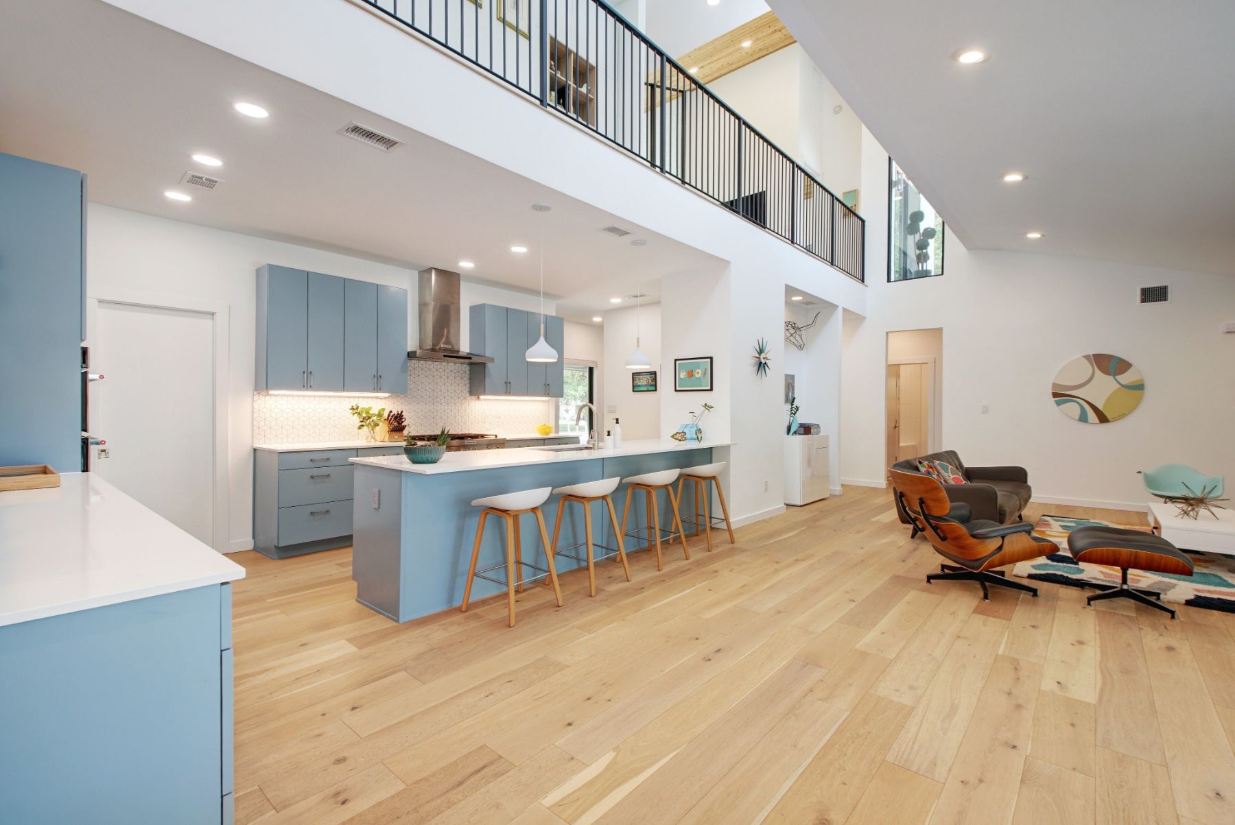 The lot’s gorgeous, mature trees set the tone for this remodel, but they also came with constraints. Expanding outward wasn’t an option, so we turned our focus inward and upward. Within the existing footprint, walls were reimagined to create flow, while a brand-new second story gave the home room to grow.
